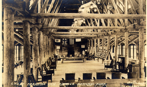 post card of the interior of Paradise Lodge in Mount Rainier National